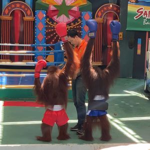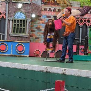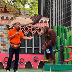 ツアーの写真ではオラウータン2匹と写真を撮っていますが、実際は1匹と写真を撮るのに1人あたり500バーツ必要。ジャングルクルーズというアトラクションに乗ったが、子供なら楽しめるかもしれないが、古い作り物の動物を船に乗って見るだけで1人370?バーツ(正しくは覚えてない)はあまりにも無駄遣いと感じた。動物のショーは楽しかったが、動物と触れ合うには全て追加料金がかかるので、お金がないと楽しめない。お昼のビュッフェは残念ながら美味しくなかった。ツアーガイドさんは感じが良かった。