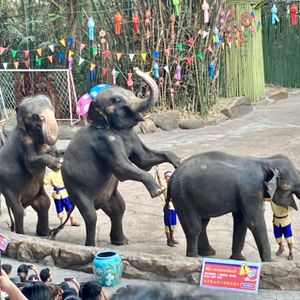 ショーがたくさん組まれ、全く飽きません。タイ語も英語のわからない子供達も楽しんでいました。全てを見ようとすると、凄く忙しいです。ガイドさんがいないと効率よく回れないと思います。ビュッフェは人が多いし種類もそう無いのでまあまあですが、涼しいので休憩にはいいかもです。キリンの餌あげでは頭や顔など触れるので、他ではなかなか体験できないと思います。おすすめです。