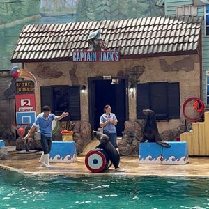 日本では見れないようなショーでした。イルカの口の上に乗って人が宙を舞うなど。また、魚をせがむイルカの姿が可愛かったです。
