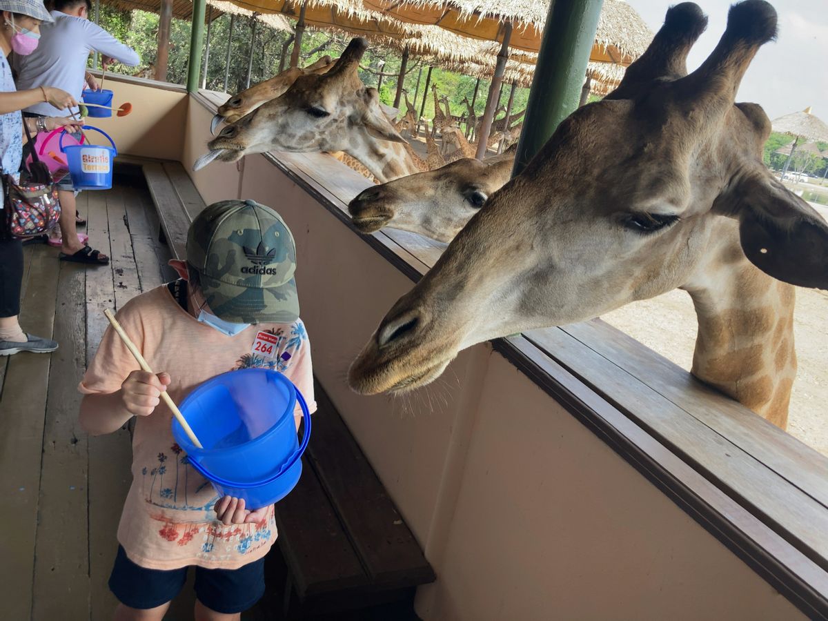 コロナの影響で専用車を用意いただき、ホテルから出発することができました。約45分くらいで到着し、乗っていた車のままサファリパークへ。朝なので、動物たちが、ご飯を食べたり、自由に歩き回る姿を見られました。特に、印象的だったのは、めちゃ走るシマウマやトラが池に入って遊んだりしている姿を見たのは初めてだったので、すごく嬉しかったです!サファリパークの後はマリンパークへ。マリンパークでは、ショーのほかに餌やりや一緒に動物と写真を撮れるスポットがたくさんあります。キリン、カピバラへの餌やり、楽しかった!トラの赤ちゃんやオラウータンの赤ちゃん、大きなフクロウ、イルカと一緒に写真を撮りましたが、みんな可愛かった!!!ショーもどれも面白くて、特にオラウータンのショーと象のショーが楽しかったです!時間があれば、もう1回行きたかったくらい楽しかった。タイガーズーがコロナで閉園してしまいましたが、こちらも同じくらい楽しかったです!大人も子供も楽しめる場所です!(餌やりや一緒に写真は他の動物のもあります)