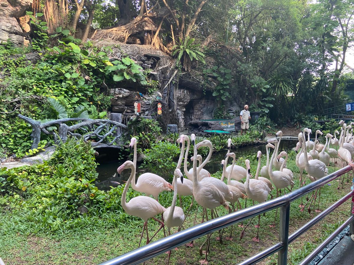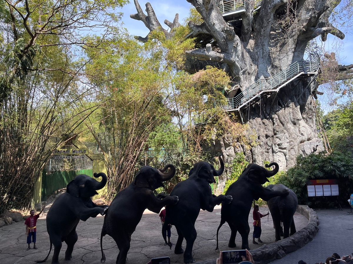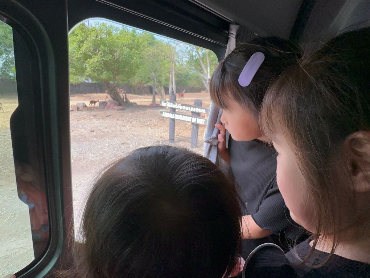 合計3組グループのツアーでした。行きのバンは掃除がされていないため、ペットボトルやヤクルトのゴミが座席に残っていました。日曜日だったので40分で到着。ただ混みすぎでサファリパークは大渋滞。動物も暑さで日陰にいたりして鳥と鹿類がメインでした。その後、オラウータンショーへ。既に始まっていて混みすぎのため座れず、内容も苦手な内容でした。その後、希望者がタイガーの赤ちゃんやオラウータンの写真撮影。1人500バーツです。1人400バーツでジャングルクルーズへ。安全性や古さなどなど色々な事が重なり凄く怖かったです。食事は大会場で、種類も少なく、味もそれなりだったので、その日は混みすぎで、美味しかったと評価している他の方が食べた物と違うのかなと思います。キリンの餌やりをしてドルフィンショーもオラウータンショーと同じ様に激混み。その後50分の自由行動。涼しい屋内のカフェが見当たらず日陰で時間を潰しました。3歳の子供が居ましたがベビーカー必須です。かなり歩きますし、急がされます。15時に現地出発。その後ホテルへ。添乗員さんは本当に親切で気遣ってくださいました。相対的に見て個人旅行では無理な場所ですし、行って良かったです。