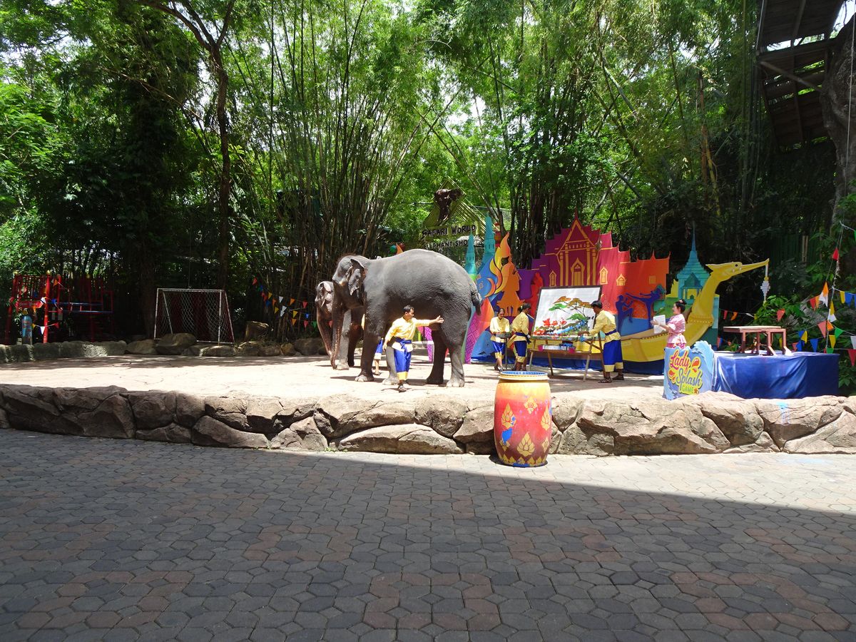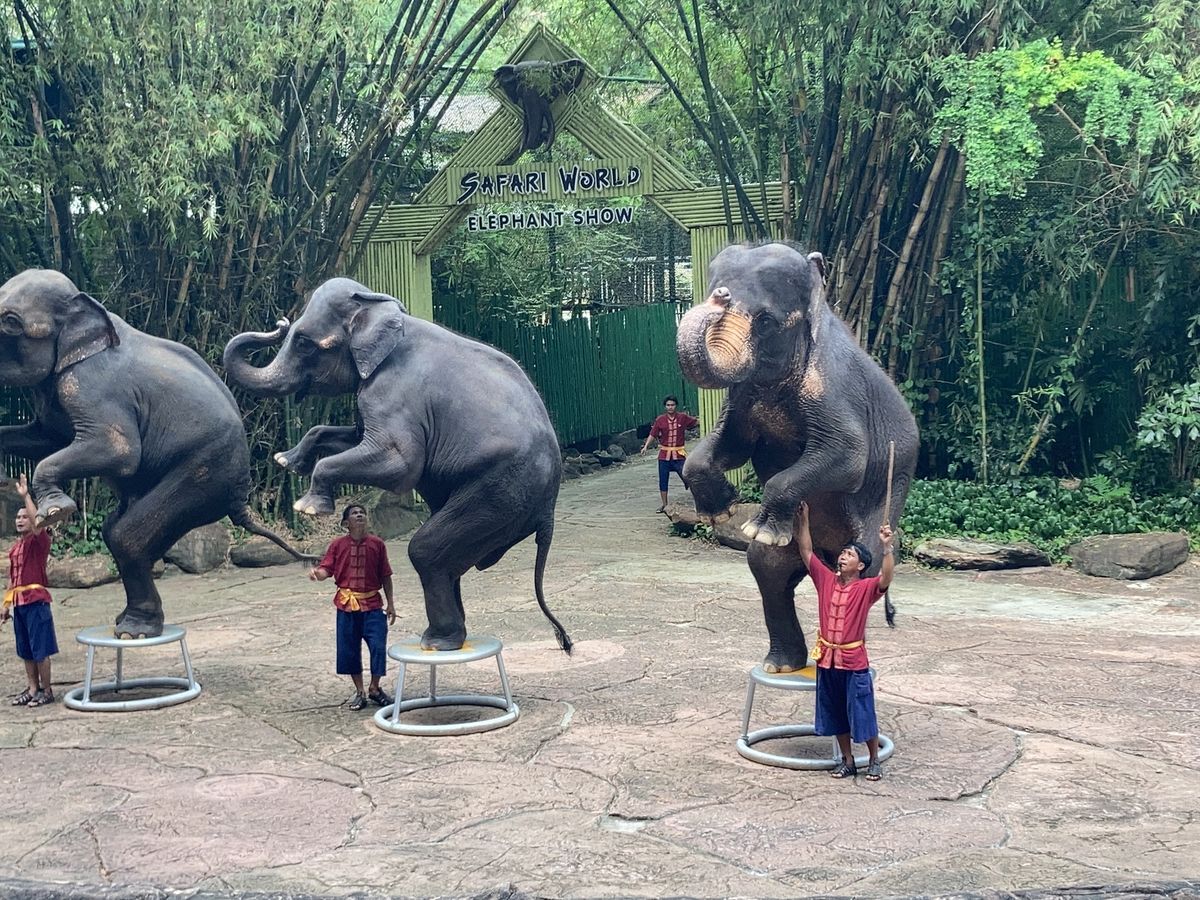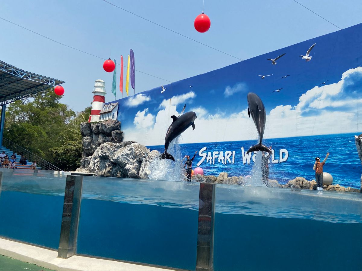 合計3組グループのツアーでした。行きのバンは掃除がされていないため、ペットボトルやヤクルトのゴミが座席に残っていました。日曜日だったので40分で到着。ただ混みすぎでサファリパークは大渋滞。動物も暑さで日陰にいたりして鳥と鹿類がメインでした。その後、オラウータンショーへ。既に始まっていて混みすぎのため座れず、内容も苦手な内容でした。その後、希望者がタイガーの赤ちゃんやオラウータンの写真撮影。1人500バーツです。1人400バーツでジャングルクルーズへ。安全性や古さなどなど色々な事が重なり凄く怖かったです。食事は大会場で、種類も少なく、味もそれなりだったので、その日は混みすぎで、美味しかったと評価している他の方が食べた物と違うのかなと思います。キリンの餌やりをしてドルフィンショーもオラウータンショーと同じ様に激混み。その後50分の自由行動。涼しい屋内のカフェが見当たらず日陰で時間を潰しました。3歳の子供が居ましたがベビーカー必須です。かなり歩きますし、急がされます。15時に現地出発。その後ホテルへ。添乗員さんは本当に親切で気遣ってくださいました。相対的に見て個人旅行では無理な場所ですし、行って良かったです。