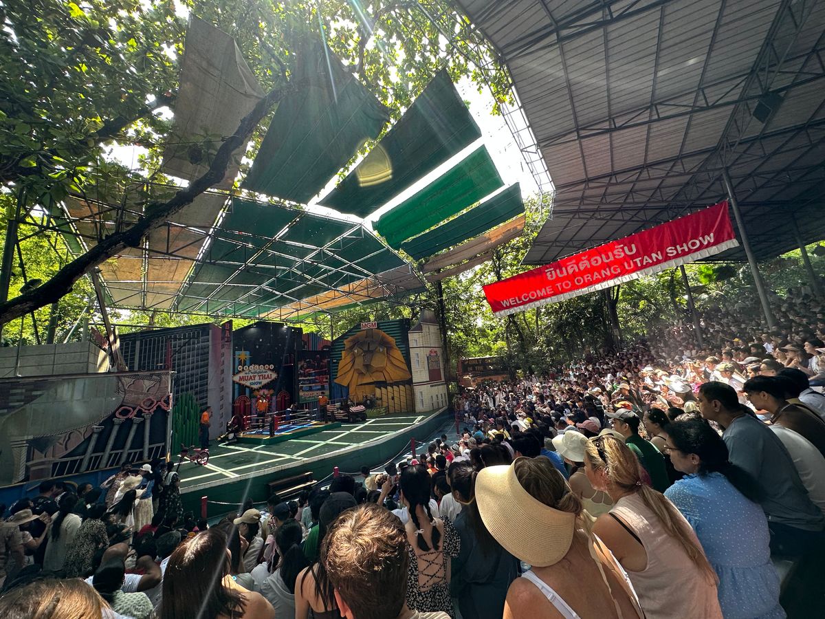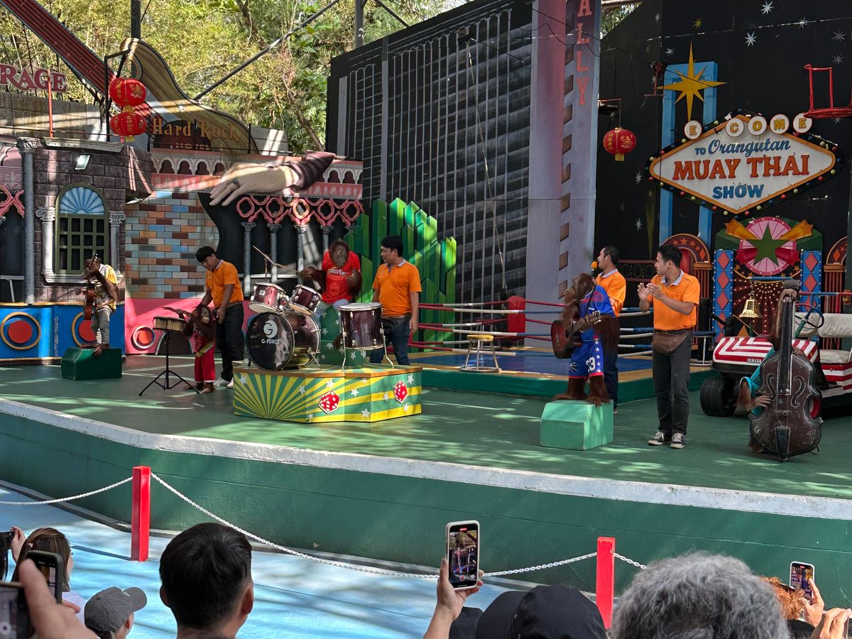 ツアーの写真ではオラウータン2匹と写真を撮っていますが、実際は1匹と写真を撮るのに1人あたり500バーツ必要。ジャングルクルーズというアトラクションに乗ったが、子供なら楽しめるかもしれないが、古い作り物の動物を船に乗って見るだけで1人370?バーツ(正しくは覚えてない)はあまりにも無駄遣いと感じた。動物のショーは楽しかったが、動物と触れ合うには全て追加料金がかかるので、お金がないと楽しめない。お昼のビュッフェは残念ながら美味しくなかった。ツアーガイドさんは感じが良かった。