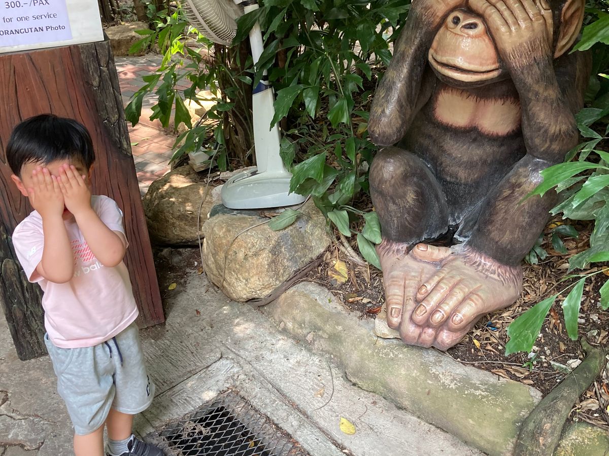 朝8時にお迎えが来て、朝9時にサファリに到着。そのままの車でサファリを回る→オランウータンのショー→キリンにえさやり→ゾウのショー→中華?タイ?のビュッフェランチ→(早く食べ終わったらボート?)→オランウータンと写真撮影→イルカのショー→14時過ぎには帰路へ→バンコク市内のホテル着15時くらい、という流れがどうやら決まっているようです。2歳児を連れていましたが、オムツ交換の時間もなかなかなくタイトなスケジュールでした。他のお客さん1組と混載だったからなのかもしれませんが。個人的にはショーをみる種類をもっと減らして動物とのふれあいの時間をゆっくりとりたかったですが、我々の希望は特に聞かれず、次はここ、次はここ、と連れていかれるスタイルでした。