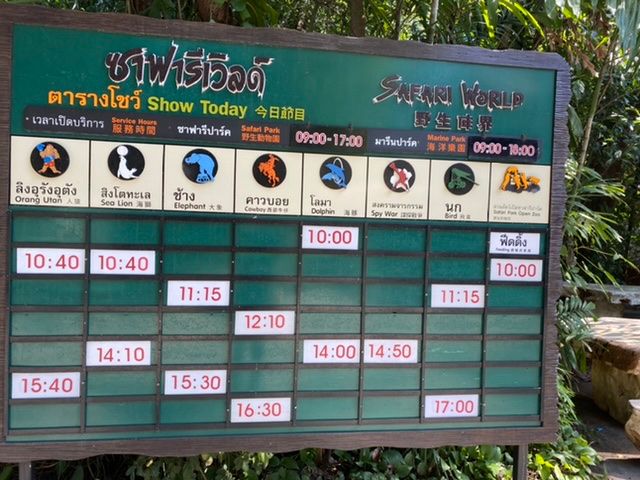 今回こちらのツアーを申し込んだ理由は、1番に送迎が有難いと思ったからです。行きも帰りもほぼ時間通りに進めてくれました。またサファリワールドでもテキパキと進行してくれたので、観たいと思っていたショー6つ全て観ることができ、とても満足できました。キリンの餌やりや、オラウータン、虎との記念撮影は、可能と書いてありますが、別途料金が一撮影ごとに100Bほどかかるので、そこは注意してください。行き先々での写真は、こちらからお願いするとツアー進行の方が撮ってくれます。カップル、友人の方は記念に撮ってもらうと楽しい思い出が増えること間違いなしです!!
