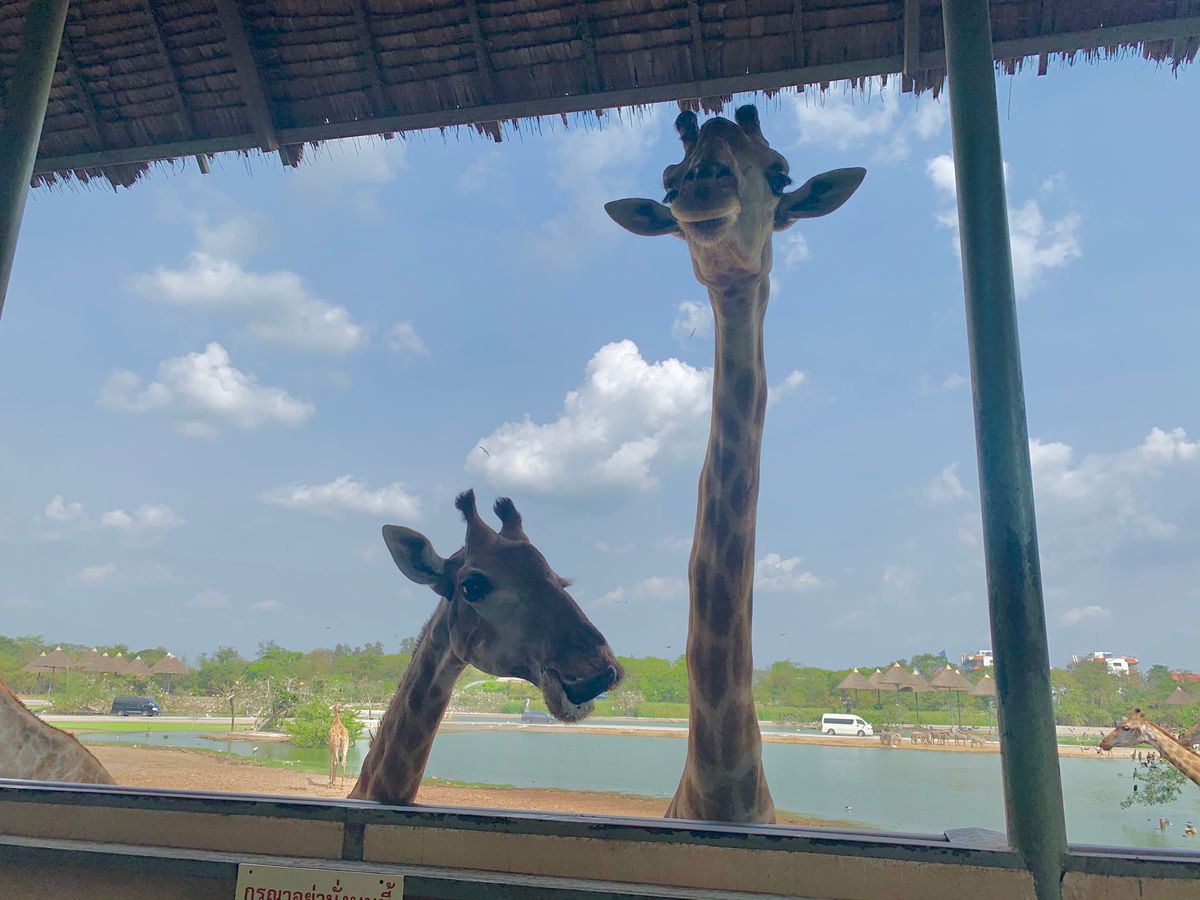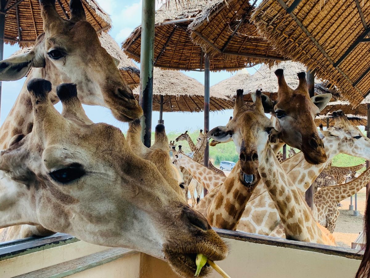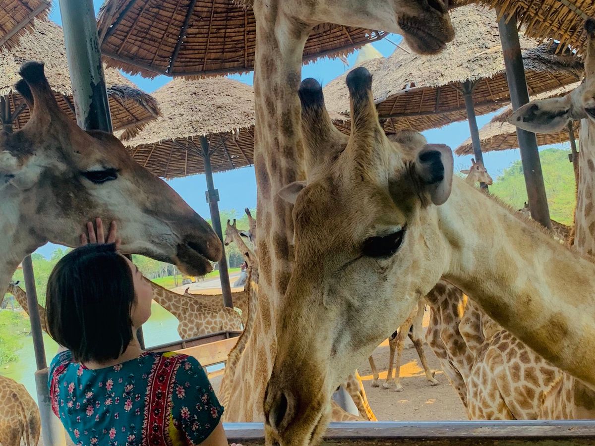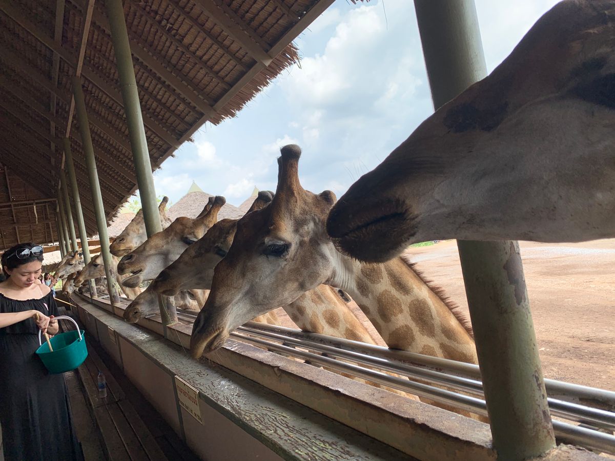 たくさんのキリンを間近で見てみたくて参加しました!200頭のキリンは想像以上に圧巻!とても近くに来てくれるし、エサをあげるのも楽しかったです。写真もたくさん撮れました。広い敷地を車で回るのも見応えがありました。ショーはいくつもあり、ガイドさんと相談して1番人気のオランウータンのショーと象のショーを見ました。オランウータンは賢く、笑いがたくさんあるショーでした!ショーではビールも販売してたので、可愛い象達を飲みながら見れました。ランチのビュッフェはあまり期待していませんでしたが、目の前で作ってくれるフォーのようなものや、出来立てのソムタムサラダ、他のおかずも美味しく、お代わりまでしてしまいました(笑)午後はイルカショーも検討していましたが、疲れたので帰宅。この日は私達だけしかツアー客が居なかったので、ガイドさんと自由に散策することが出来ました。ガイドさんは優しく、迎えも時間通り。ユーモアもあり楽しく過ごせました!園内は広く、どこに何があるかいまいちわからず、ショーの時間も決まっているので、ガイドさんが効率よく案内してくれ、本当にこのツアーを申し込んで大正解でした!またぜひ参加したいと思っています。