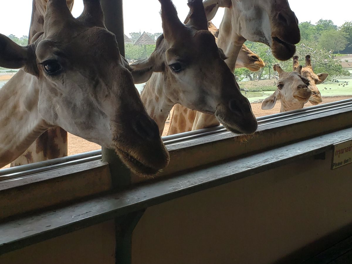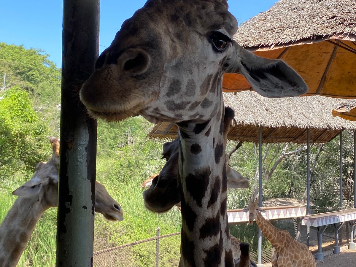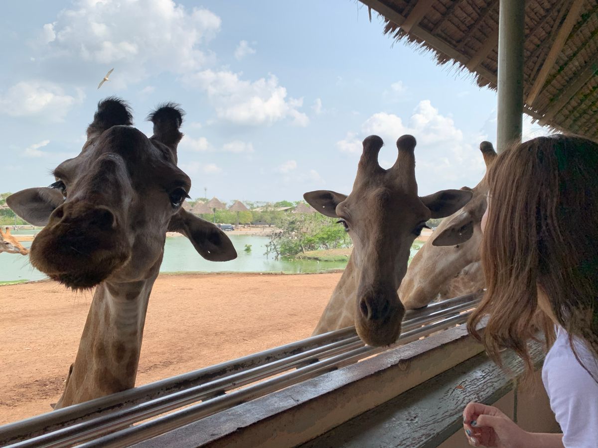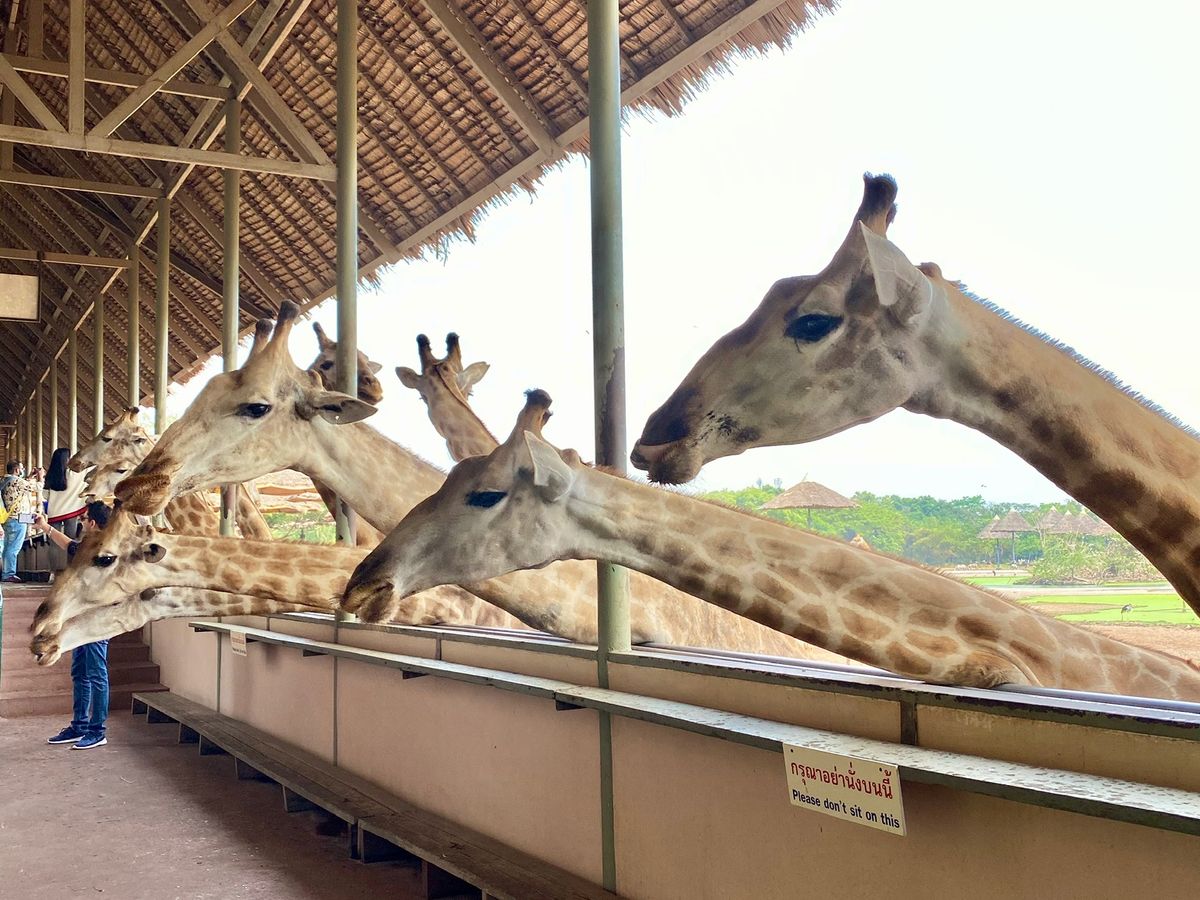 たくさんのキリンを間近で見てみたくて参加しました!200頭のキリンは想像以上に圧巻!とても近くに来てくれるし、エサをあげるのも楽しかったです。写真もたくさん撮れました。広い敷地を車で回るのも見応えがありました。ショーはいくつもあり、ガイドさんと相談して1番人気のオランウータンのショーと象のショーを見ました。オランウータンは賢く、笑いがたくさんあるショーでした!ショーではビールも販売してたので、可愛い象達を飲みながら見れました。ランチのビュッフェはあまり期待していませんでしたが、目の前で作ってくれるフォーのようなものや、出来立てのソムタムサラダ、他のおかずも美味しく、お代わりまでしてしまいました(笑)午後はイルカショーも検討していましたが、疲れたので帰宅。この日は私達だけしかツアー客が居なかったので、ガイドさんと自由に散策することが出来ました。ガイドさんは優しく、迎えも時間通り。ユーモアもあり楽しく過ごせました!園内は広く、どこに何があるかいまいちわからず、ショーの時間も決まっているので、ガイドさんが効率よく案内してくれ、本当にこのツアーを申し込んで大正解でした!またぜひ参加したいと思っています。