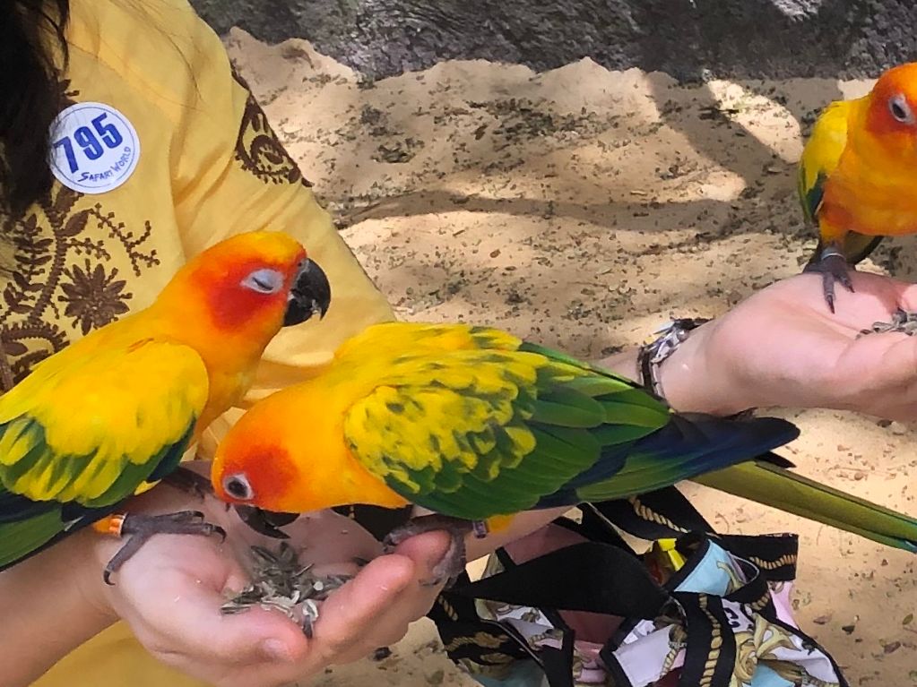 あと、多分、動物園内のMAPをいただきたかったです。自分でもらいに行けばもらえるかもしれませんが、何がどこにいるか分かりにくかったです。自力でホワイトタイガーとインコに餌をあげる小世界にはいきました。インコえさ80バーツ。ひまわりの種を目当てにたくさんのインコが手に集まったり、頭に乗ったり、とても楽しかったです。ガイドさんからお勧めは無かったですが、リバーサファリより安くてとても楽しめました。