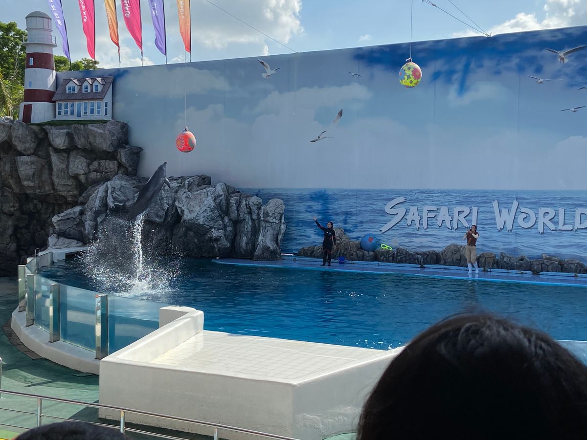 女性のガイドさんでしたが日本語も上手でとても優しいかたでした!サファリワールド→イルカのショー→オラウータンのショー→ぞうのショー→キリンのえさやり→ランチ→自由自由のながれでした!