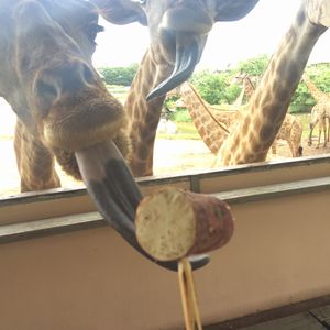 キリンの餌やり