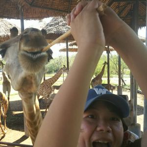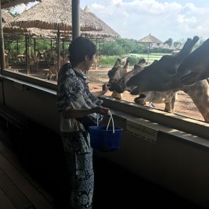 当日は私達家族だけだったので、時間の融通を利かせていただいたり、自由に回ることができました。象のショーは見なかったのですが、その間にキリンの餌やりにいったらガラガラで、300頭?のキリンを満喫できました! あとから象も見たいとショーの会場に行ったら、出番を終えた象が寛いでいて、これまた貸切で、写真を撮ったり象乗りしたりできて大満足でした。ある程度自分達のペースでゆっくりまわれたのが良かったと思います。