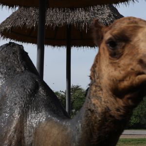 動物たちが寄ってきます。とにかく暑くて大変でした。