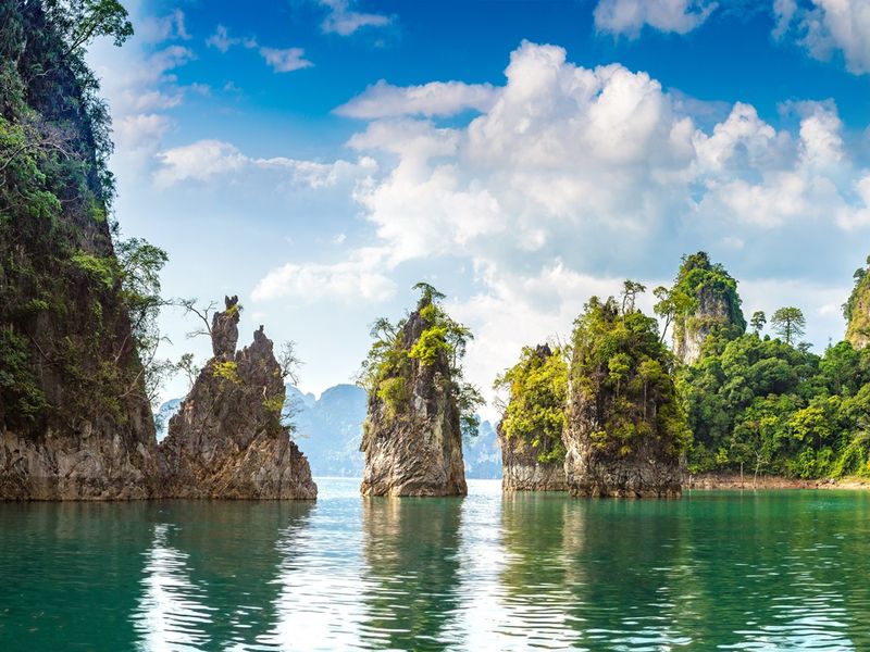 タイの秘境、カオソック国立公園。世界最古級の熱帯雨林が広がるこの地は、ダイナミックな断崖絶壁と神秘的な大自然の宝庫です。