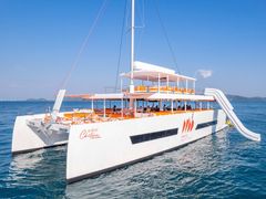 豪華な82フィートの大型船シャトー号で、究極のヨットパーティーを体験しましょう。船上DJによる音楽やビュッフェ料理、多彩なマリンアクティビティを楽しめます。青い海と美しい島々の絶景とともに、ラグジュアリーな一日をお過ごしください。