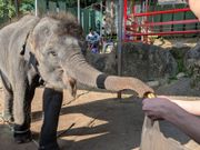 像乗りの経験があったため他の参加者を待つ間、子象への餌やり(100バーツ)をしました。 鼻でお金を受け取った小象は飼育員さんに渡し、鼻を上げて鳴き声でお礼を言ってくれました。 餌のバナナを食べた後一緒に写真を撮りましたが、鼻を私の頬にくっつけてキス。 トラと一緒に家族写真を撮るのがメインで申し込んだツアーで、もちろんそちらも大満足でしたが、小象の賢さと可愛さに癒されました。