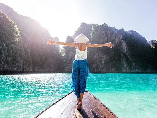 映画『ザ・ビーチ』の撮影地としても有名なマヤベイ。巨大な石灰岩の山々に囲まれた三日月型の白い砂浜が広がる神秘的なビーチで、散策や写真撮影などをお楽しみください。