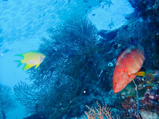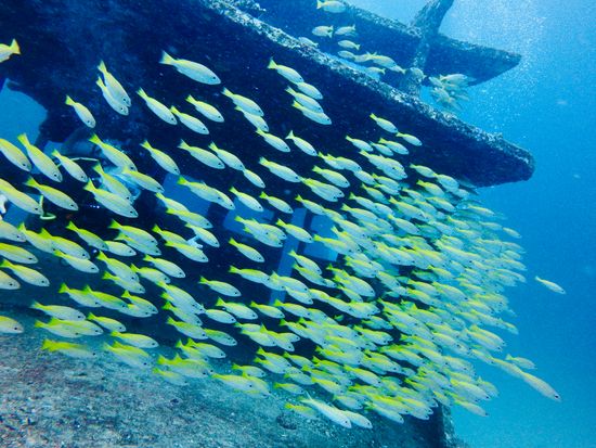 写真派・中上級者向け。圧巻の魚影の沈船とマクロを一度に