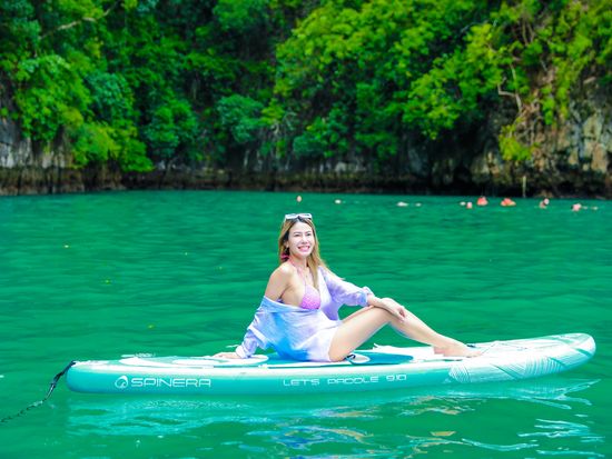 SUPで水面に浮かぶ映えショット撮影