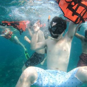 マヤベイでのシュノーケリング時に、ボートから飛び込みをさせてくれるため、かなりスリリングすがとても良い写真を撮ってもらえました。ただ、一緒に参加した友人は、飛び込みの際にコンタクトレンズが外れてしまったため、眼鏡や予備のコンタクトを持参した方が良いと思います。サンゴ礁はあまり色がなく、想像とは違いましたが魚は大量でとても綺麗でした✨