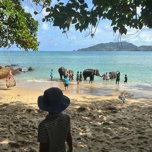 まずエレファントスイムですが、雨季で10時くらいでしたが天気も良く海も綺麗でした。