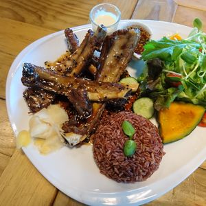12時過ぎ 車で人気のオーガニックカフェへ。終わったら車に来てねとドライバーさんとバイバイし、2人で店内へ。地元の方ですごく賑わっていました。サラダメニューが豊富で、頼んだサラダが大きすぎて食べきれないかと思いました。メニューは写真付きで、ジュースも美味しく、すぐお腹いっぱいになりました。