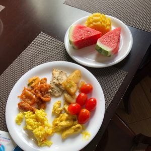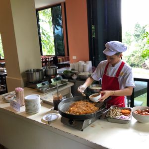 絶景ポイントを回ったあと、象乗りが混んでいたため先にランチをとりました。ランチの場所もホテル&スパの中にある雰囲気のよいレストランでした。ビュッフェ形式でタイ料理を中心にお料理が並んでおり、どれもとっても美味しいビュッフェでした。ちゃんと即席でパッタイやフォーを作ってくれるブースやアイスやフルーツなどのデザートも置いてありました。