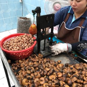 二軒目はカシューナッツ工場です。色んな味付けのカシューナッツを試食できます。タイはカシューナッツが取れるということを知りませんでしたが、試食したカシューナッツはどれもすごく美味しいです。こちらでも購入の予定はありませんでしたが、つい買ってしまいました笑