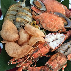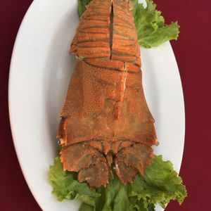 空心菜の炒め物を早速頂いていると、トムヤムクン。とっても美味しくて、おかわりしました。次はメインのロブスター。食べきれないのに、最後のデザート。大満足でした。