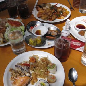 象乗りの後、昼食は中華料理やタイ料理、カレーや天麩羅にお寿司もあるバイキングで美味しかったです。