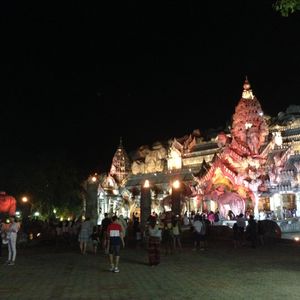 たくさんの象と象使いによるショーがあります。これだけ多くの象が音楽とストーリーに従って動くというのは珍しいです。広い会場ですので、象が小さく感じられます。そのショーの待ち時間には、移動遊園地のような施設で時間を過ごしますが、小規模で昔懐かしい感じの催事が行われています。