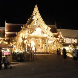 ビーチで夜できることは、買い物やごはんになりがちですが、ホテルからの送迎もついて非常にいい思い出ができました。夕食付だったのですが、レストランの席も指定席だったので混雑も避けられました。園内では象乗りもできたり、お土産を買ったり、またライトアップされたタイ風の建物の写真を撮るのもとても楽しい思い出になりました。ショーはもちろん、その他にもたくさん楽しめるのでとてもおススメです。