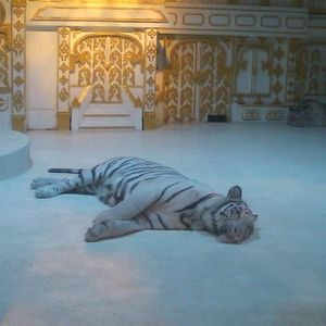 ショーが始まるまで時間(21:00時開始)はありますが、食事をして、ホワイトタイガーを見て、3人で象乗り(記念写真付で590B)を試して、屋台ゲームのようなものでプレー(有料ですが)していると、飽きずに過ごせました。食事の会場は1千人以上収容でき、巨大で圧巻ですが、テーブルは相席になり、椅子が密接しているので、少々気をつかいました。料理の種類はいろいろありますが、味はそれなりです。。