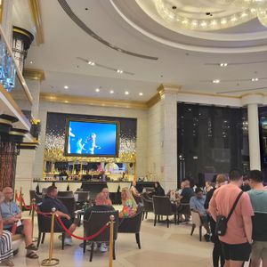 入り口に着いた途端、本当に異国でした!きらびやかで華やかで興奮しました。中に入ると色々なお店があり、綺麗な娘さんが踊っていたり、大道芸人がいたり、皆気さくに一緒に写真を撮ってくれます。象も人を乗せてすぐ側を歩いていますし、とにかく圧倒されました。まずは腹ごしらえです。ブッフェ会場が広い❗️半端なく広い。でも、食べ物は何箇所にもあるので、混乱もなく好きな物を好きなだけ食べることができました。どれも大変美味しく、これだけでも満足です。そして、ショー開始。カメラ、スマホは全員預けます。会場は、寒いくらい。沢山の人と動物が、これでもかと演技してくれます。頭上では空中ブランコ!動物たちの賢さに頭が下がります。いまだかつて、これほど凝縮されたショーは見たことがありません。これでもか、というぐらい見せてくれます。感激と感動の嵐でした。