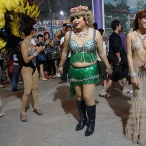 ショーのあとはニューハーフ達が外でズラーッと並んでます。