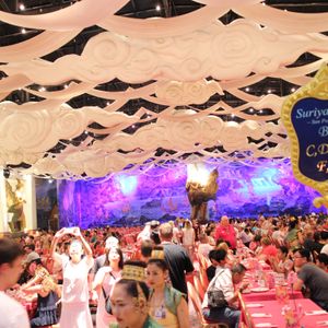 正面入り口ではチケット交換に長蛇の列、それだけで汗だく状態。食事会場までお金の掛かるアトラクションしかなく、ぶらぶら行くと施設の奥にレストラン。着席は、笑顔の無いスタッフが担当。バイキングは殆どスパイシーで口に合わず。次のイベントは鳴り物入りで行進が有ったものの、なんで並んで見なきゃいけないの程度のチープなもの、ショーまでの時間を潰すにはお金が掛かるもので興醒め。やっと時間になって入場するも、またまた長蛇の列。やっとのことで着席するも、10分遅れでショーが始まり、象の行進でやっと来たかいが有ったと興奮出来ました。その後のショーは各演目は大感動でしたが、進行に脈略が無く、ワンワンしているうちに終了。あまり感動は感じませんでした。