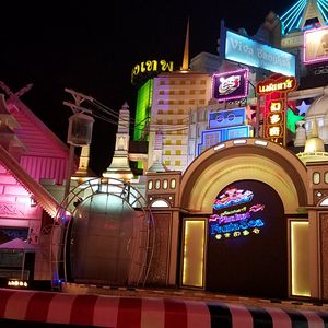 入り口からもうネオンがすごい。ショーの時間までヘナタトゥーをしてもらい象にのり充実してました!