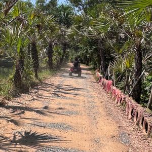 小3,小5と大人二人で参加しました。英語での説明が不安でしたが、写真や実物を操作しながらの説明だったので、なんとなく分かりました。子供と相乗りで、子供と一緒にハンドルを握ったので、運転をしているような感覚だったようで喜んでいました。道のりはでこぼこや水たまりがあり、飽きることなく走れました。1時間コースでしたが、ちょうどよかったです。