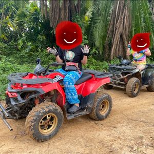 こちらのATVバギーは、お写真からも分かるようにマングローブ林の中やデコボコ道などオフロードバギーとなっておりますので、お子様の運転は12歳からとさせて頂いております。12歳未満のお子様は大人のお客様と同乗という形でお楽しみ頂けます。また大きくなったら、運転者としてご参加くださいね。
