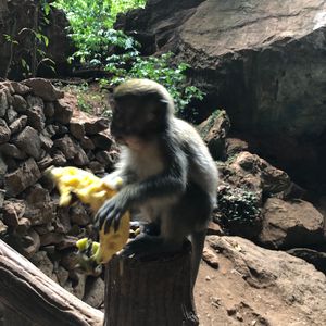 猿への餌やりですが、人が多く猿が少なく、猿は木の上にいるので中々あげられませんでした。しかし最後に子猿を見つけ、バナナを投げてやると取って食べてくれたので嬉しかったです。鳩の餌をまくと、ものすごい勢いで鳩が集まってくるので面白かったです。猿のところのトイレはおそらく5バーツ必要でした。