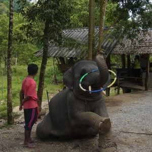 Zipラインは結構なスピードが出て,あっという間でした。笑 Zipラインが終わったあとには,小象のショーがありました。小象と写真も撮れ,最後にはキスまでしてもらいました。笑