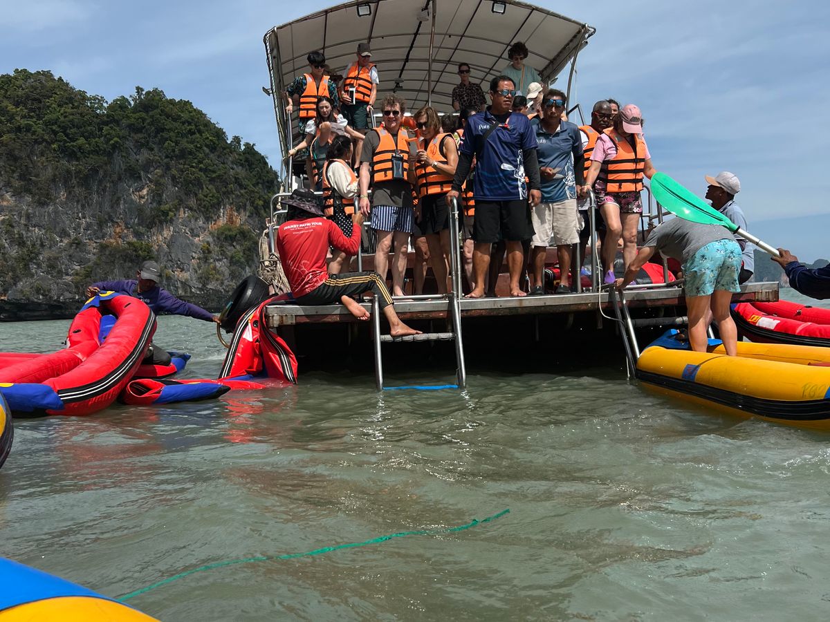 この日は泳がずに海を楽しもうと思い、このツアーに参加しました。カヌー体験では、透き通った海の美しさを堪能し、漕いでくれたお兄さんがとても気さくで楽しい方でした。ハネムーン用の写真もたくさん撮ってくれて、素晴らしい思い出になりました✨️(写真撮影は漕いでくれた方にもよると思いますが、今回はラッキーでした)洞窟探検では、神秘的な洞窟内の景色に圧倒され、水上村では市場を見て楽しむことができました(特別なお買い物はしませんでしたが雰囲気が素敵でした)。ジェームズ・ボンド島は小さな島ですが、写真スポットが多く、記念にたくさん撮影できました!どれも海は楽しみながらシュノーケリングなしプランとしては満足な体験でした。