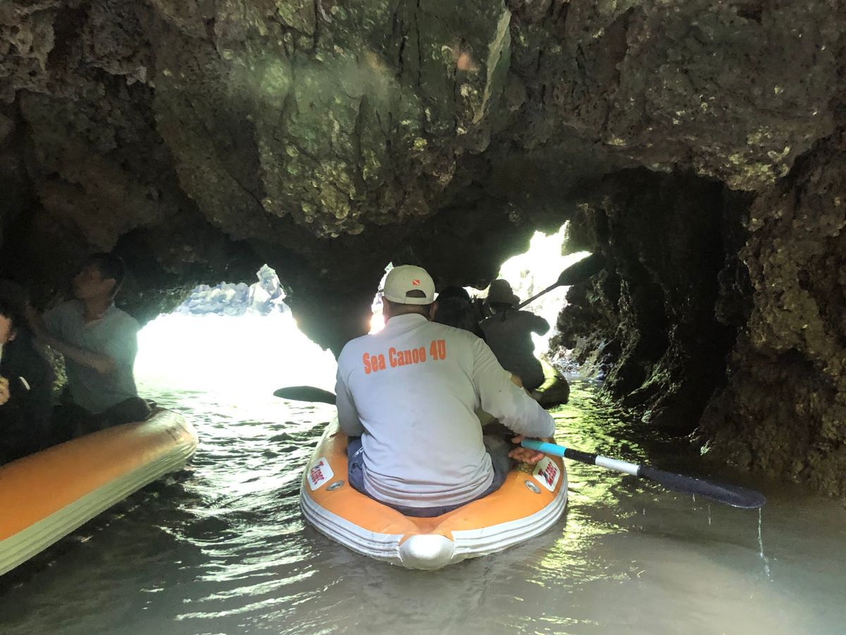 シーカヌーでは洞窟の天井が低く頭の上をすれすれのところを通り抜け、わくわくしました。また、船頭さんやガイドさんはとてもサービスが良く、撮影ポイントを教えて写真を撮ってくれたり、ボートの上で立ち上がった状態で写真を撮らせてくれたり、大満足でした。