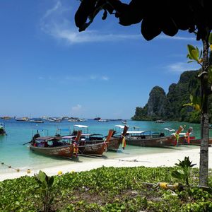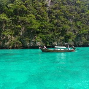 今回初めてプーケットに行きました。色々な島を船で回るのですがその船のスピードがかなり早く、酔いを感じることがないくらいでした。天候にも恵まれ、青い海を存分に楽しむことができました。ガイドさんから、時期的に雨季(5月〜10月)のビーチ(パトンビーチ等)は川の泥が運ばれ、乾期ほどキレイではないのでマリンスポーツなどをするならツアーなどでピピ島に行った方が良いと勧められましたので、雨季に行く場合はツアーを組んだ方が無難かと思われます。ガイドさんが言うほどパトンビーチも汚くはないのですが、ピピ島周辺のビーチと比べると、やはりピピ島周辺の方が段違いにキレイでした。