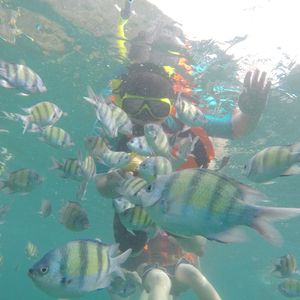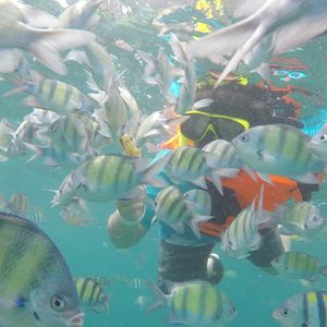 島々を移動してのシュノーケルなので回数も多いwおなかいっぱいなるかもwでも案内してくれるスポットもよくて沢山の魚をみることができました。バナナで餌付けするとびっくりするくらい魚が寄ってきます❗️写真は、有料だけどたくさん撮ってくれるし、水中と陸上撮影もありますwプロカメラマンですし綺麗なので撮ってもらった方がオススメです。朝ははやいですが、早起きした甲斐はあります。お昼ご飯のビュッフェも充実していました❗️