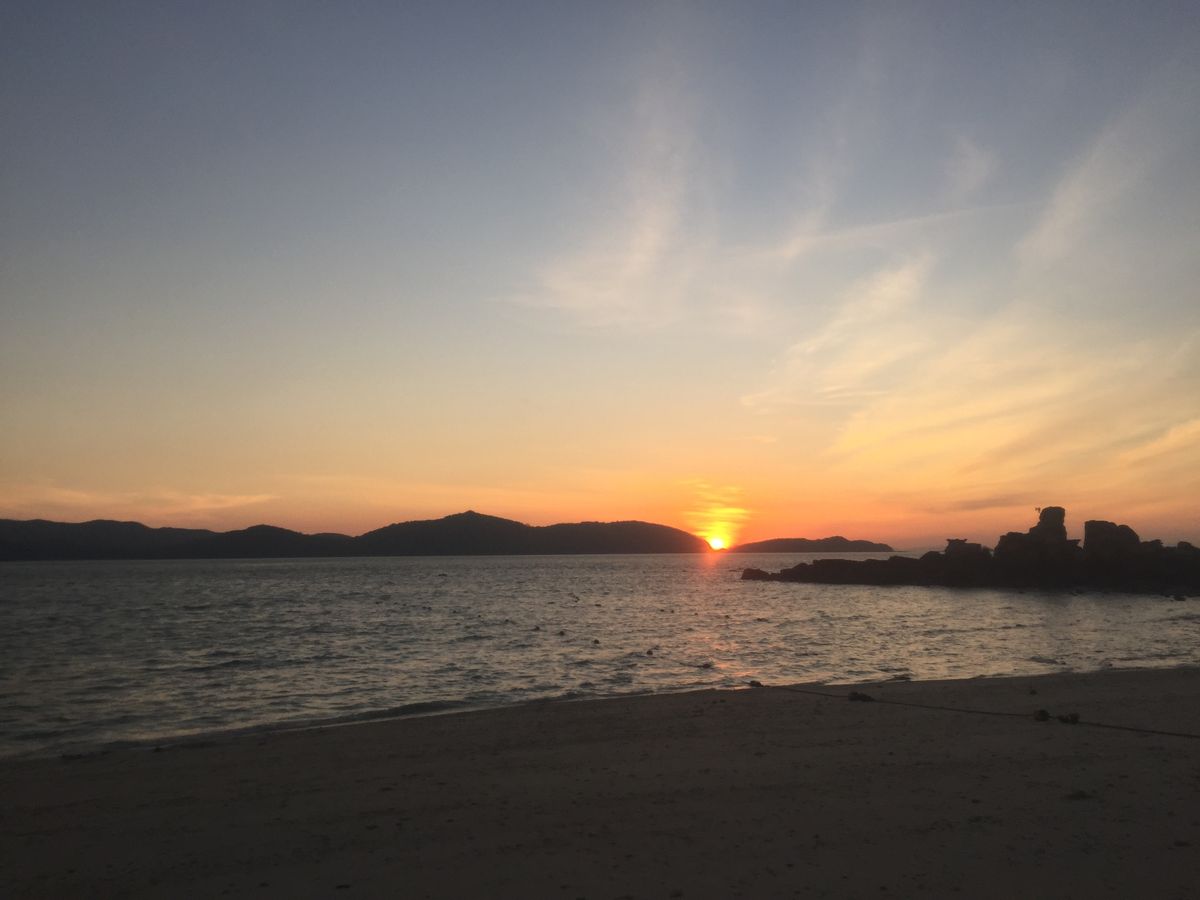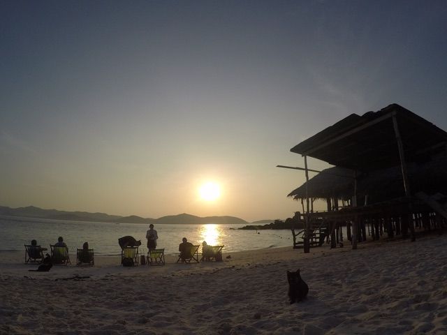 早速出発!朝日をみにカイ島へ。約20分ほど。ここではサンドイッチやちまきにぎり、フルーツなどの朝食を朝日を浴びながらいただけます。島には猫がたくさん!とても人懐こくて可愛いです!後は数羽にわとりもいました。