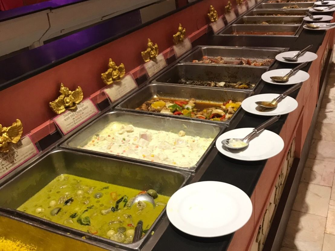 ビュッフェスタイルなので好きなものをチョイスできます!トムヤムクンや鶏肉のカシューナッツ炒めなどタイならではのメニューもありますがトマトスパゲティなどもありました!お酒とジュースは別途料金が発生します!