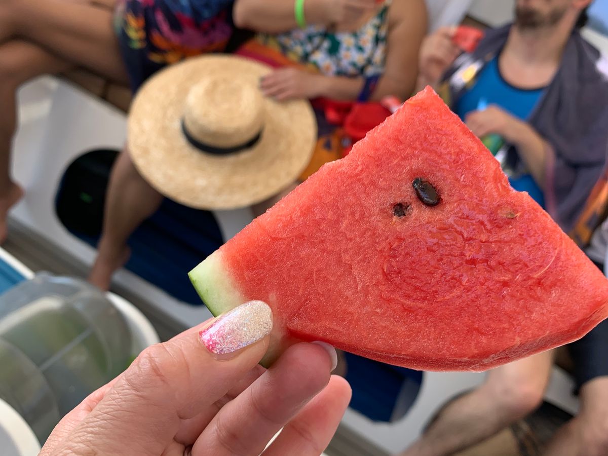 シュノーケリングをして船に戻ると冷たい飲み物やフルーツが用意してあります。嬉しいサービスでした。
