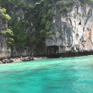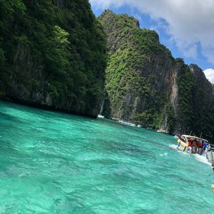 マヤベイが現在閉鎖中で上陸出来ませんが神秘的な場所「ピレーラグーン」もお天気が良いと船が浮いているような写真が撮れ、人気がございます。