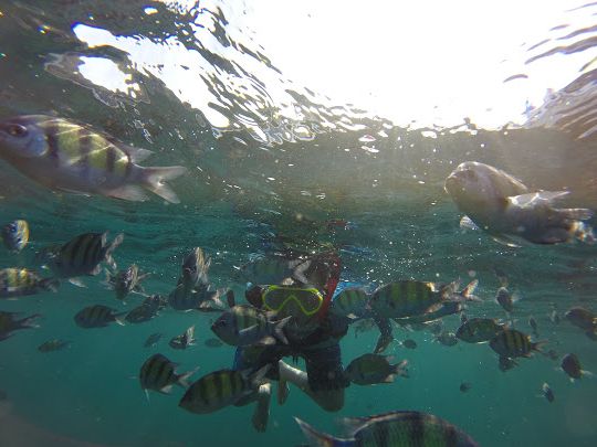 シュノーケルは魚が近くに寄って来て、時にはフィッシュスパのように体をつつく魚もいますよ。