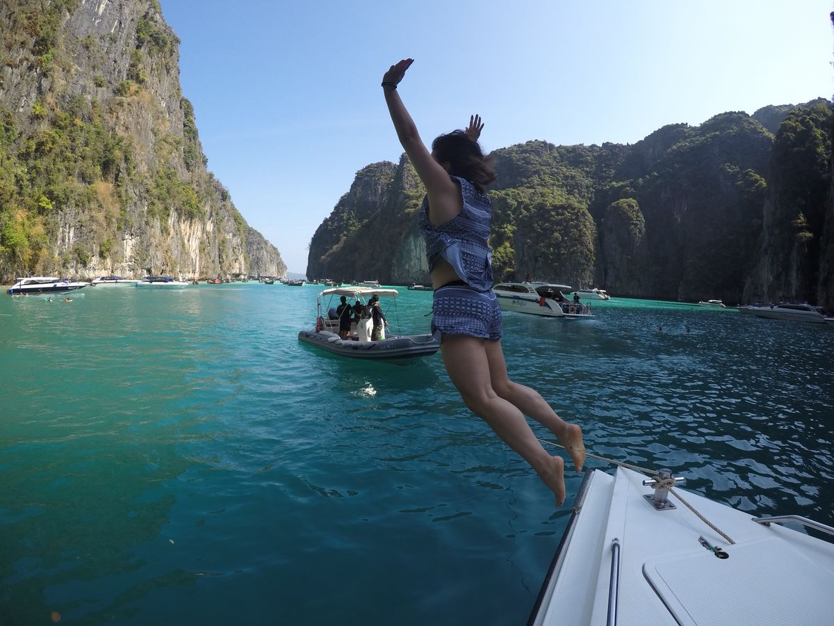 船降りると、とても綺麗なビーチ。しかも全然人がいなくて、最高!!3時間フリータイムだったので、ビーチでのんびりしたり、ランチしたり、シュノーケリングしました。シュノーケリングのゴーグルを貸していただけたので、良かったです。透明度が高く、とても綺麗でした!!浅瀬なのにカラフルな魚にも会えるので、感動です!海の少し深い所に行くと、ウニが沢山いるので、マリンシューズがあると良いと思います。ランチはビュッフェスタイルで、タイ料理っぽいですが本格的ではなかったのが残念。